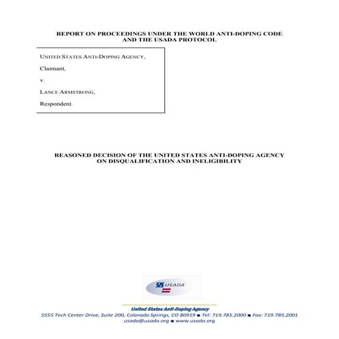 Lance Armstrong Doping Usada Reasoned Decision Report 10oct12