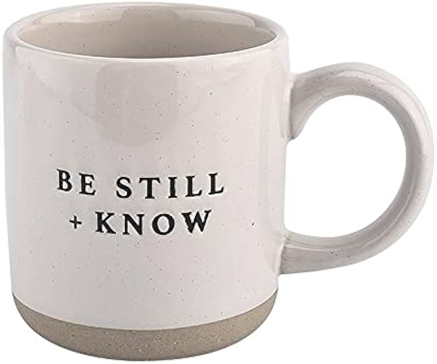 Amazon Com Sweet Water Decor Religious Coffee Mugs Inspirational Bible Verse 14oz Stoneware Coffee Cup Microwave Dishwasher Safe Mug For Church Motivation Be Still And Know Home Kitchen
